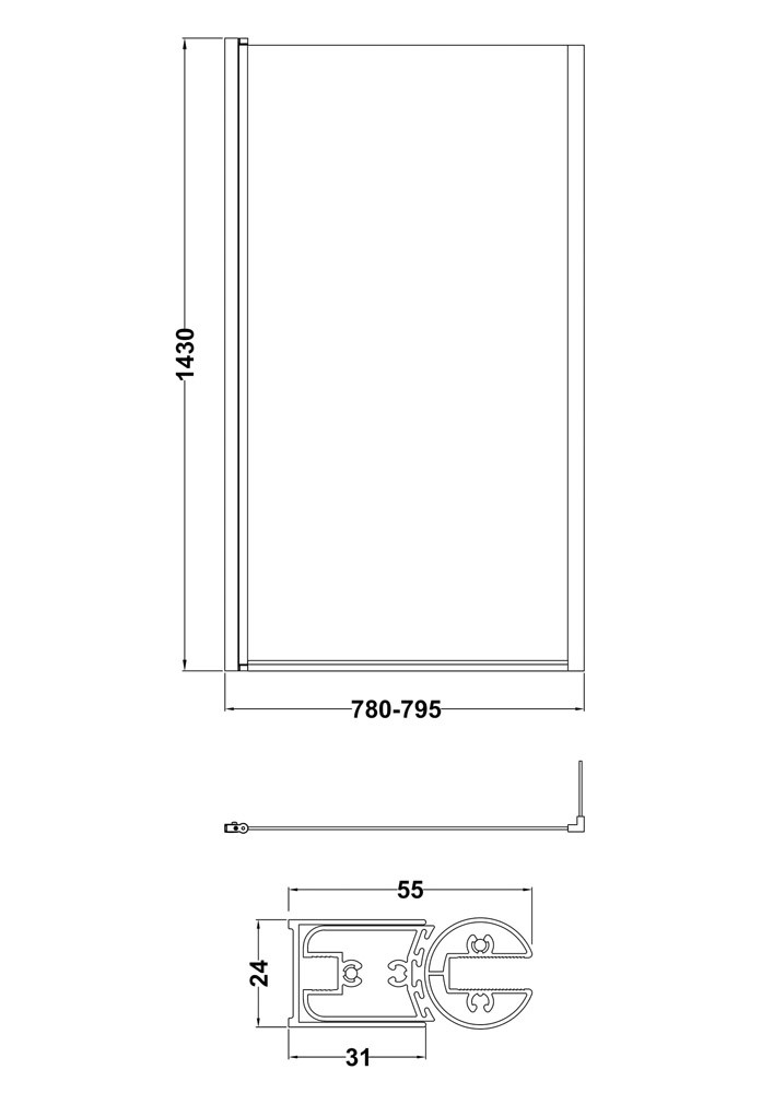Features & Benefits: Nuie Matt Black Fixed Return Bath Screen