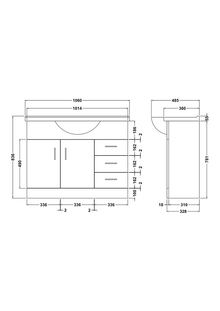 Features & Benefits: Nuie Mayford 1050mm Free Standing High Gloss White Basin Unit