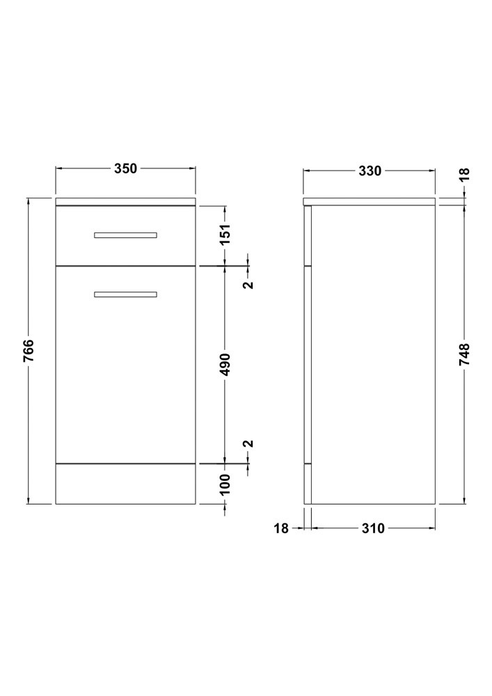 Sturdy Melamine Faced Chipboard (MFC) and durable Medium Density Fibreboard (MDF) build the cabinets and fascia of Nuie's laundry units. Glossy surfaces are easy to clean, as are the shiny chrome finishes on the provided handles. The floor standing laundry units blend into your bathroom for a tidy and organised look, and they require minimal effort to install.