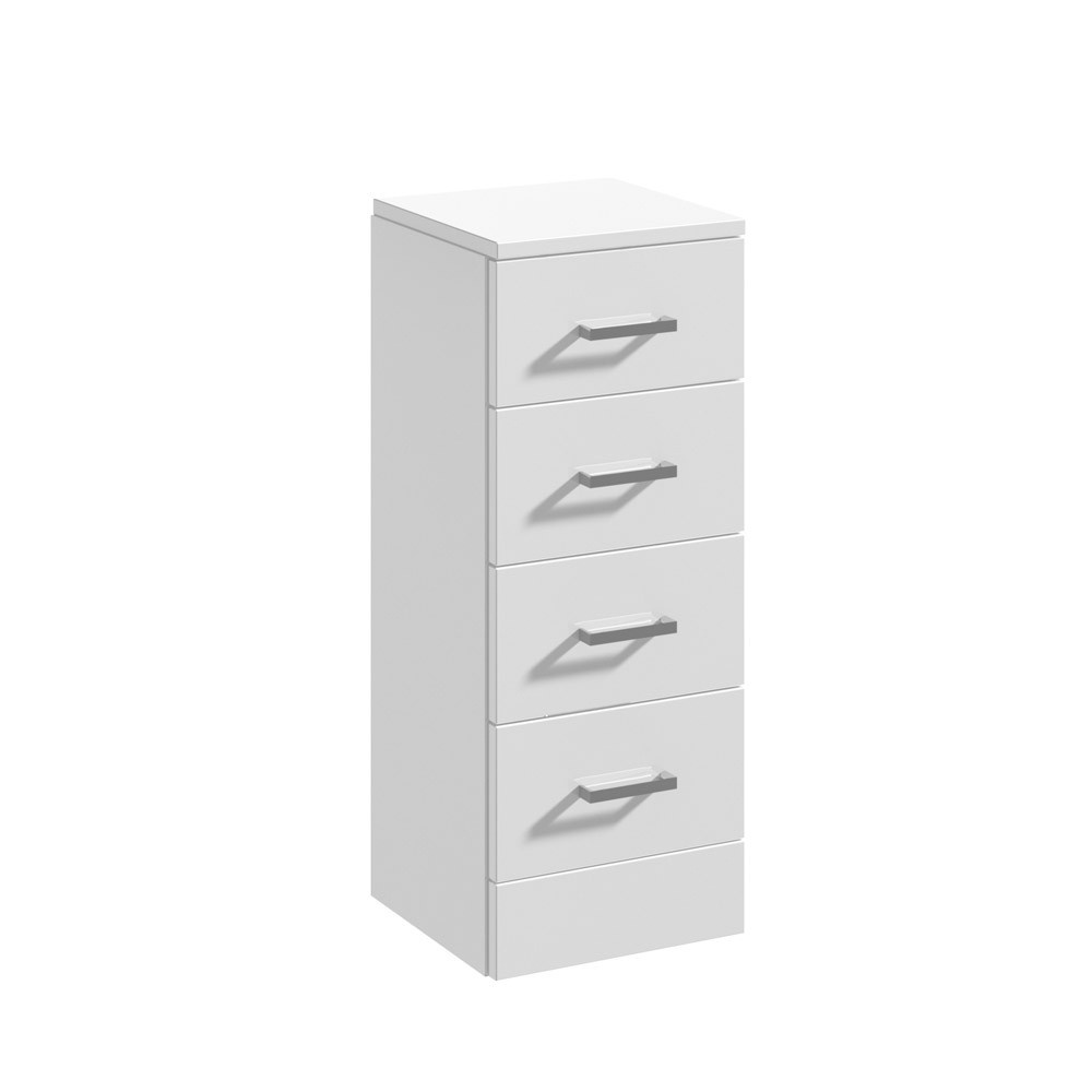 Nuie offers a range of Mayford drawer units that have glossy finishes. Perfect for a variety of modern bathrooms, these drawer units provide helpful storage space and come equipped with four drawers. Depending on your storage needs and personal preferences, these floor standing units are available in a range of sizes.