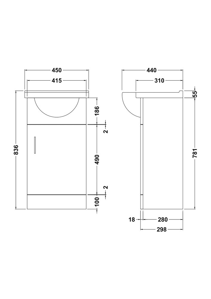 Features & Benefits: Nuie Mayford 450mm Free Standing High Gloss White Basin Unit