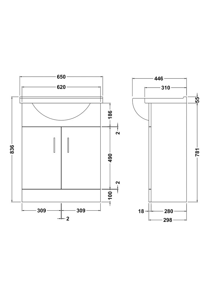 Features & Benefits: Nuie Mayford 650mm Free Standing High Gloss White Basin Unit
