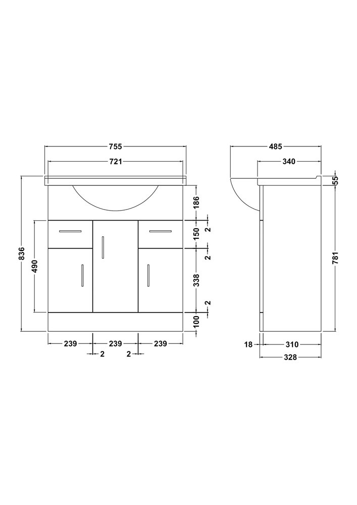 Features & Benefits: Nuie Mayford 750mm Free Standing High Gloss White Basin Unit