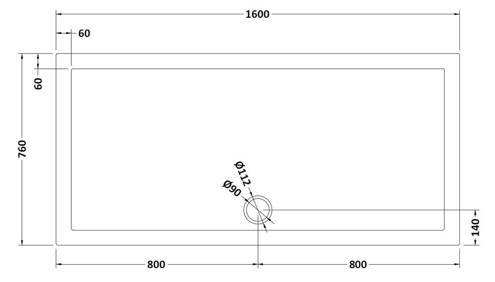 • 90mm diameter shower waste located in the tray's right-hand corner