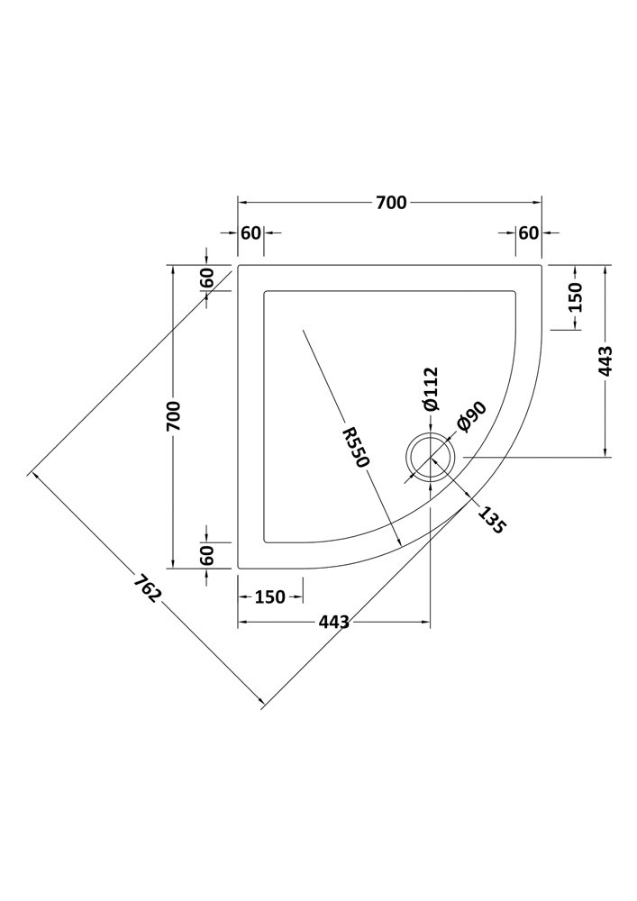 Features & Benefits: Nuie Pearlstone 700mm x 700mm Slate Grey Quadrant Shower Tray