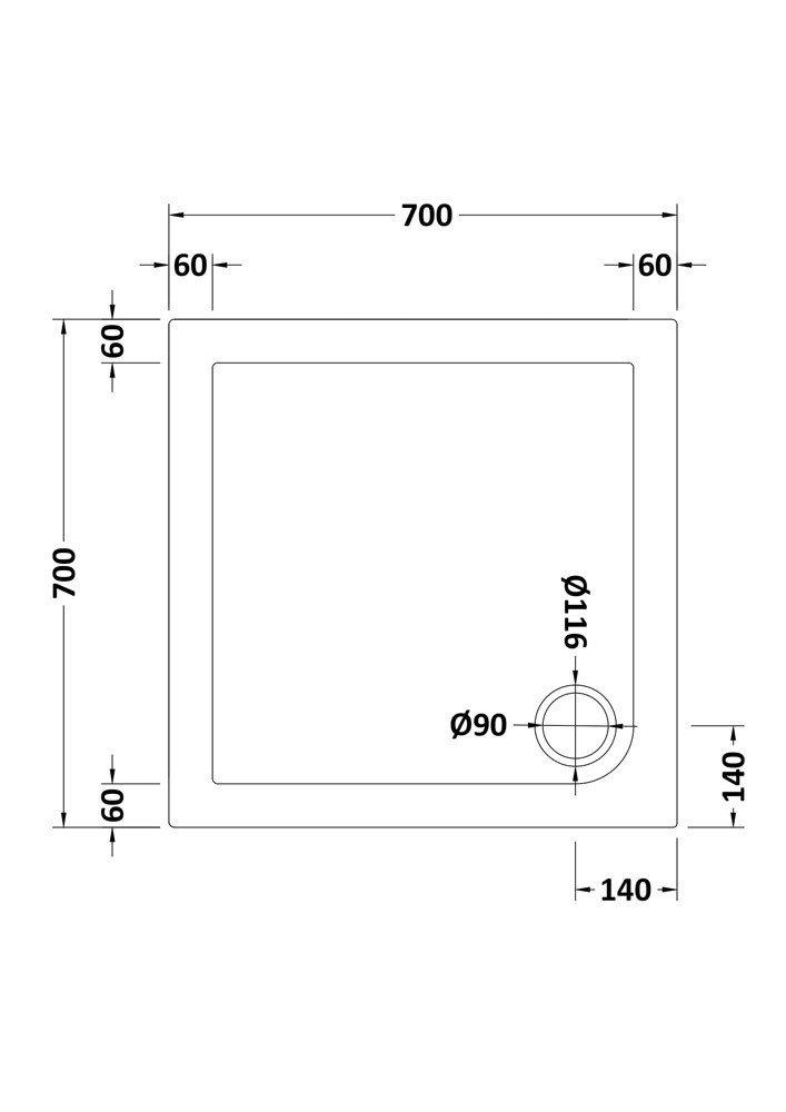 Designed with practicality in mind, the tray features a 90mm waste positioned in the corner, allowing for comfortable standing space while you shower. Its flat underside ensures a level fit on both solid and timber floors, while the Matrix base also offers screw retention, so leg sets (sold separately) can be fixed securely into place for raised installations.