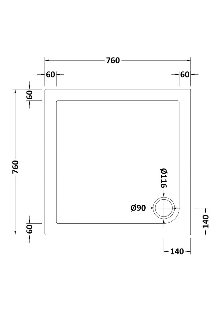 Designed with practicality in mind, the tray features a 90mm waste positioned in the corner, allowing for comfortable standing space while you shower. Its flat underside ensures a level fit on both solid and timber floors, while the Matrix base also offers screw retention, so leg sets (sold separately) can be fixed securely into place for raised installations.