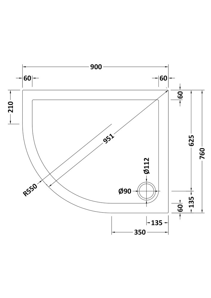 Features & Benefits: Nuie Pearlstone 900mm x 760mm White Offset Quadrant Left Hand Shower Tray