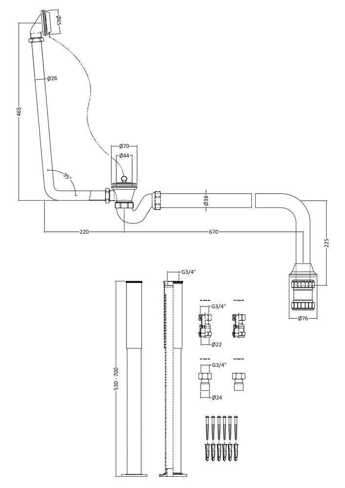 • A convenient pack of bath accessories designed to enhance your traditional freestanding roll top bath