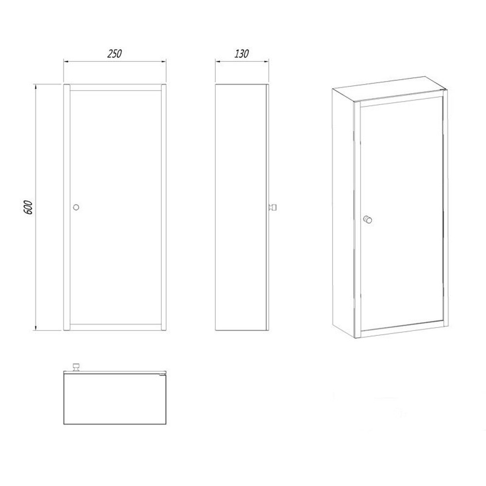 • External Dimensions: 600mm height x 250mm width x 130mm depth