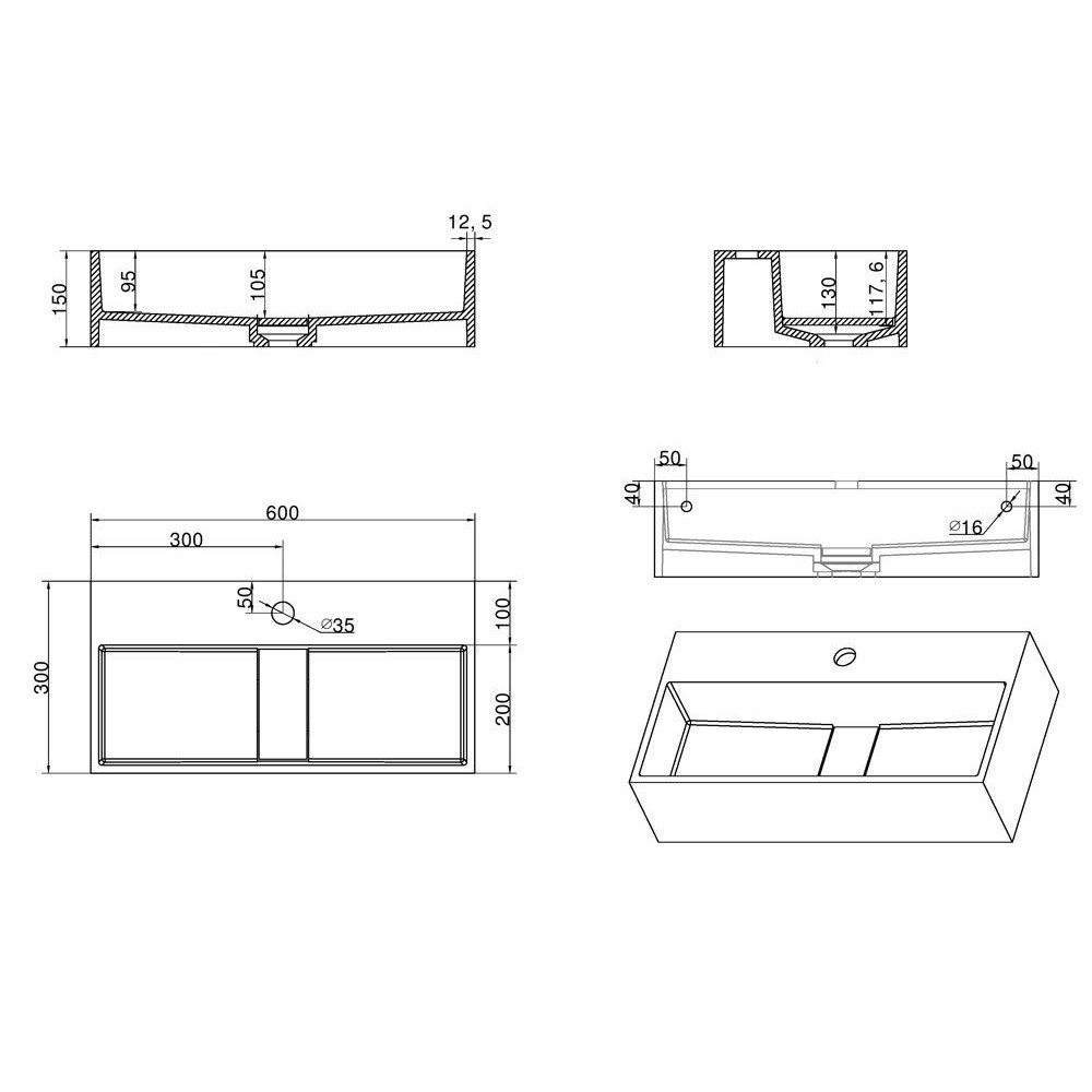 • External Dimensions: 150mm height x 600mm width x 300mm depth