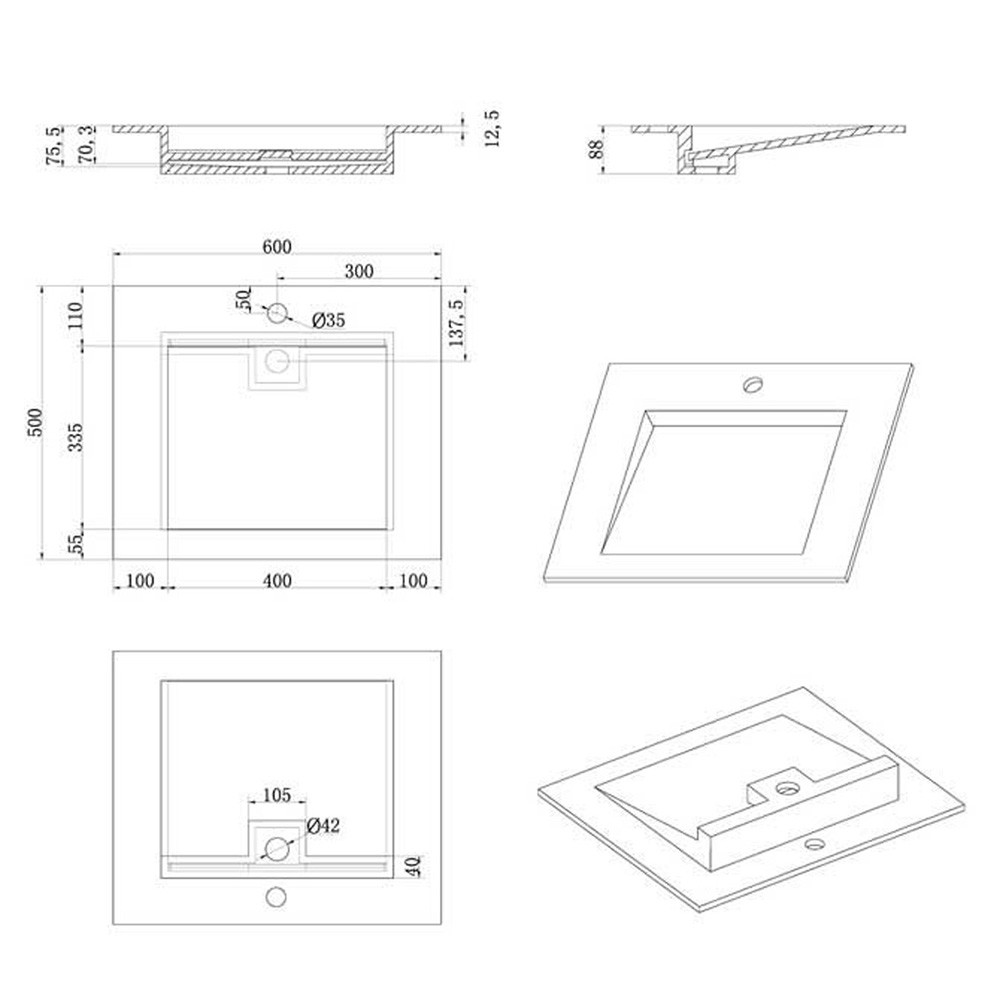 Features & Benefits: Nero White Stone Resin Rectangular Sloped Design Basin