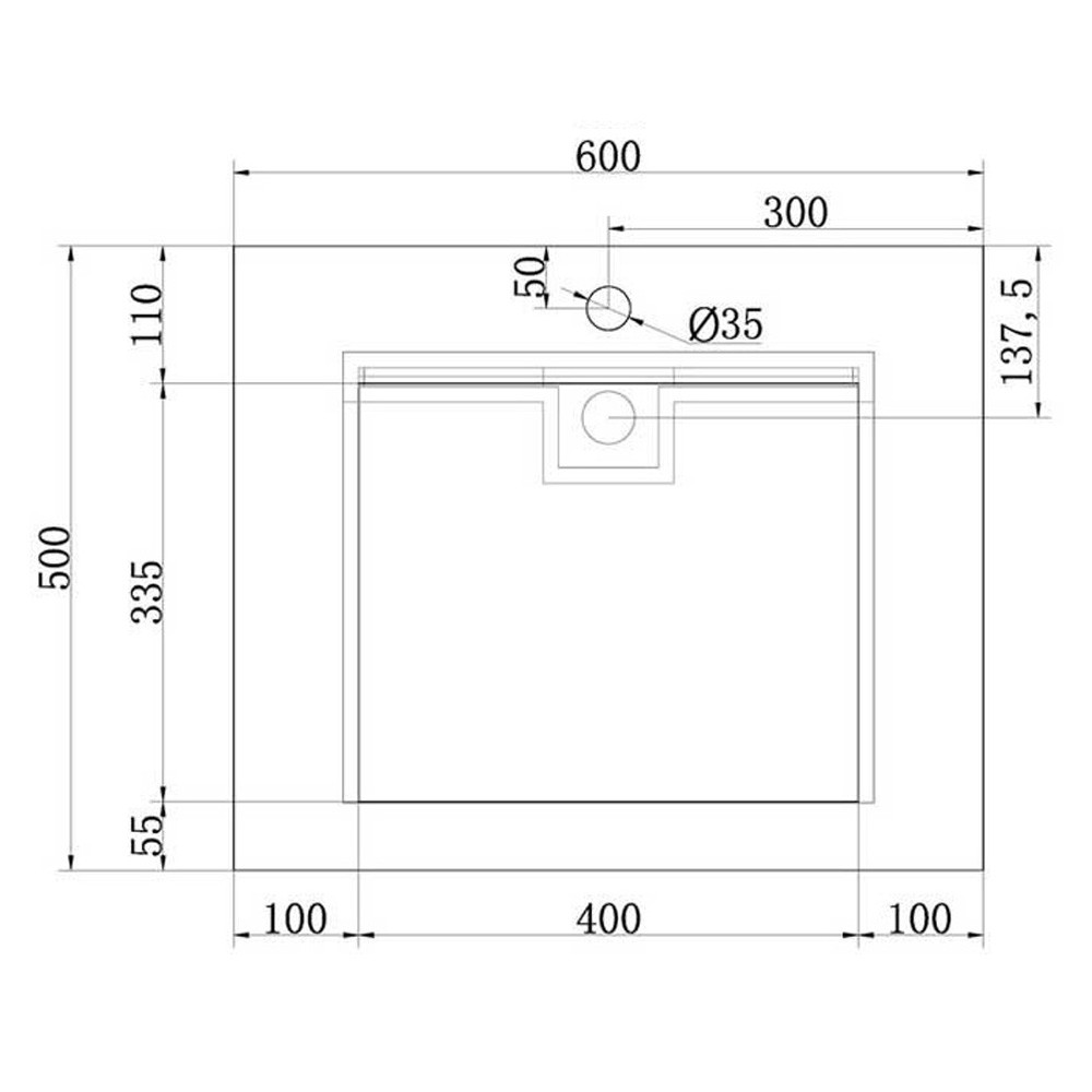• External Dimensions: 90mm height x 600mm width x 500mm depth