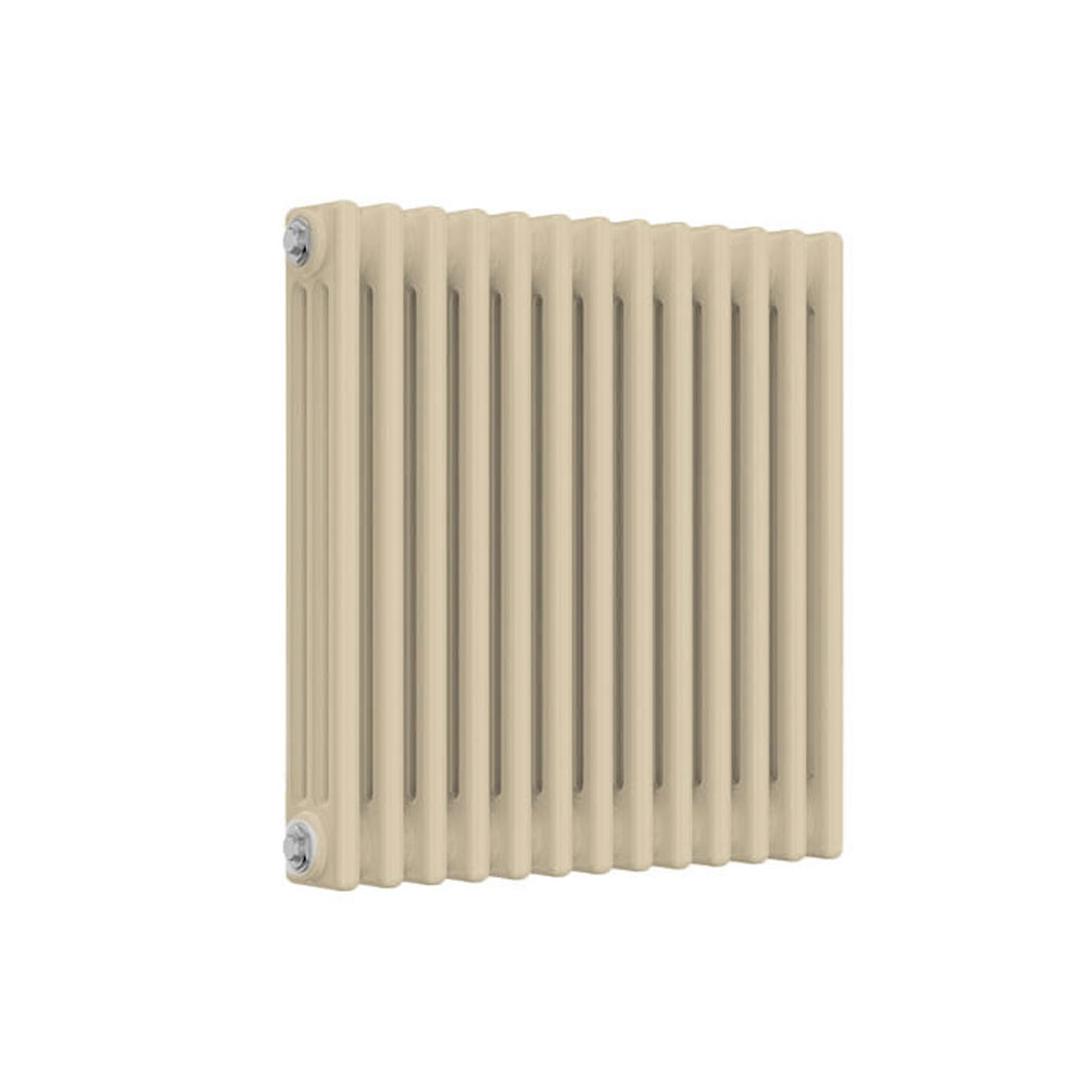 Perfect for heating smaller rooms like a bathroom, playroom or home office, this Light Ivory Reina Colona Horizontal Radiator boasts a stylish and versatile three-column design, measuring 600mm x 605mm. It offers excellent heat output, ensuring your home remains warm and comfortable throughout the year, whatever the weather.