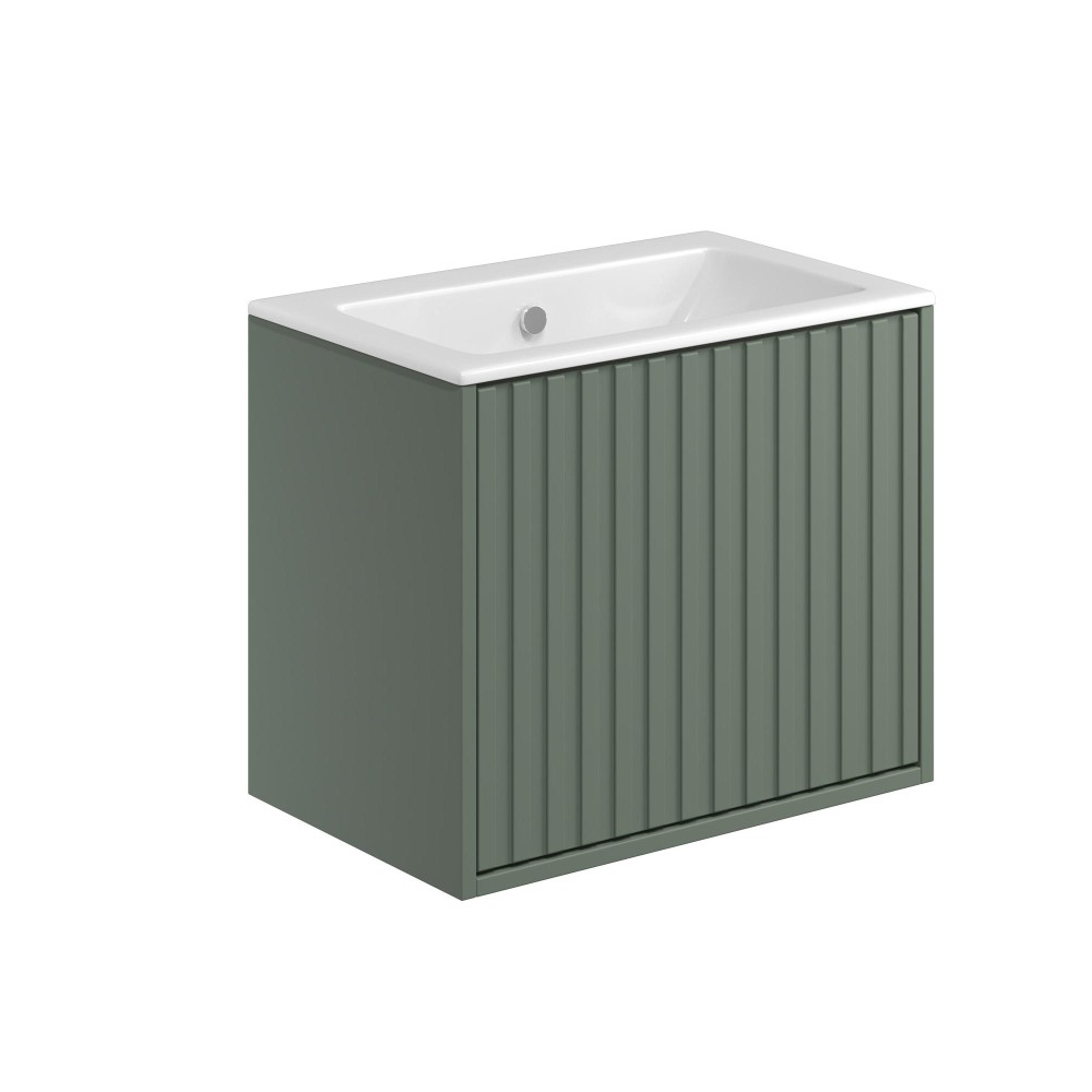 Features & Benefits: DISCON-Scudo Alfie 600mm x 500mm x 389mm 1-Drawer Fluted Wall Hung Reed Green Vanity Unit