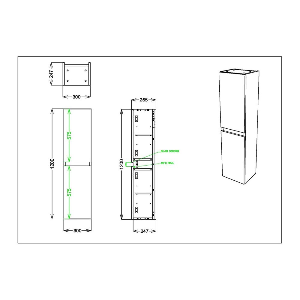 Features & Benefits: Scudo Aubrey 300mm x 1200mm x 265mm 2-Door Wall Hung Davos Oak Tall Boy Unit