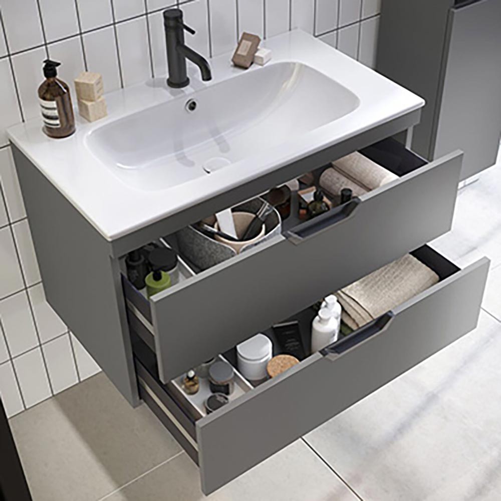 Features & Benefits: Scudo Aubrey 500mm x 440mm 2-Drawer Wall Hung Dust Grey Vanity Unit