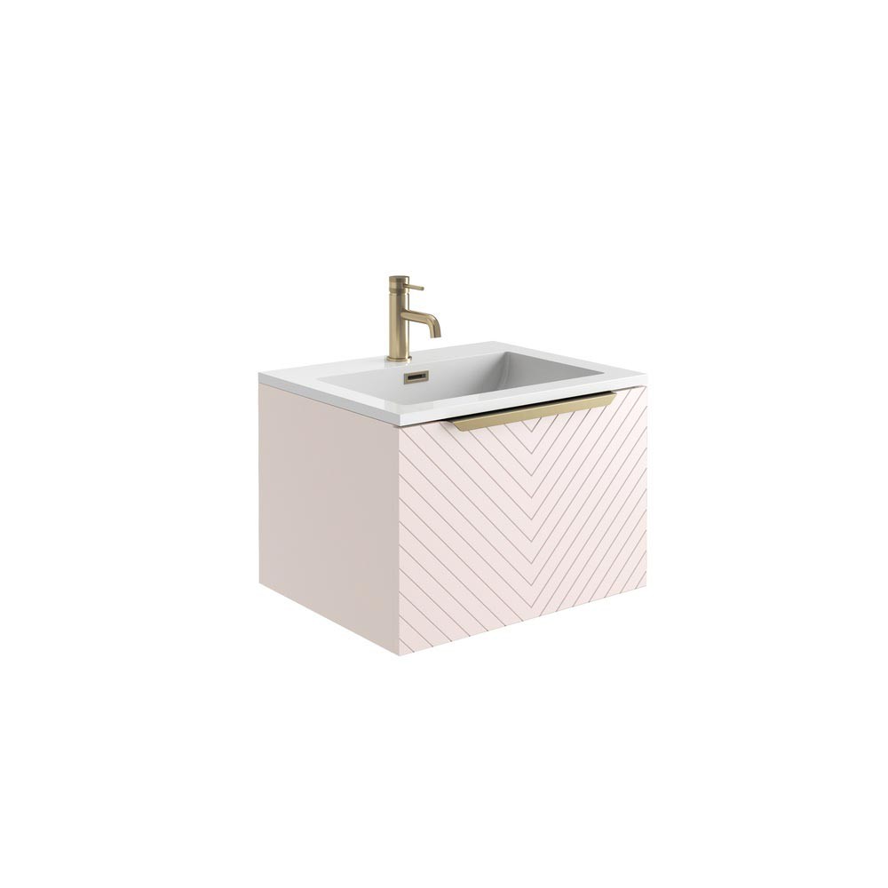 Features & Benefits: Scudo Chevron 475mm x 350mm 1-Drawer Wall Hung Pink Vanity Unit