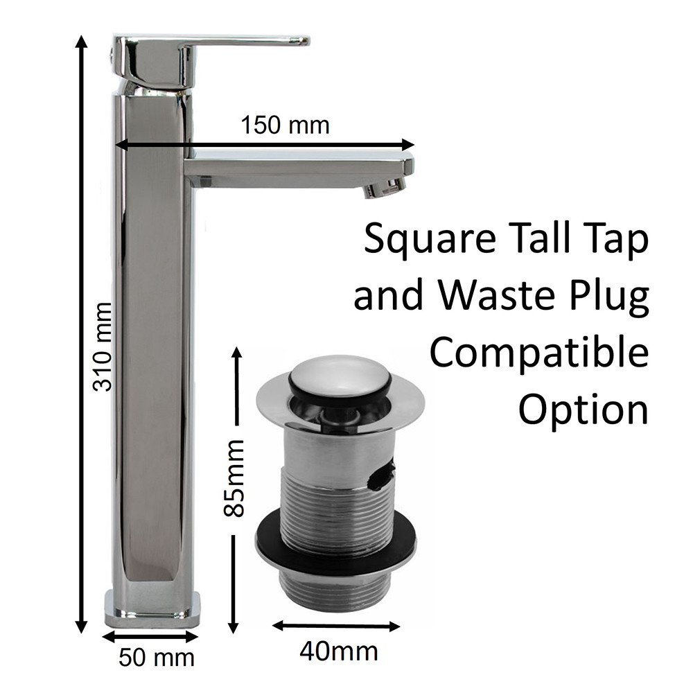 Two Piece Square Quadrato Chrome Tap with Slotted Waste