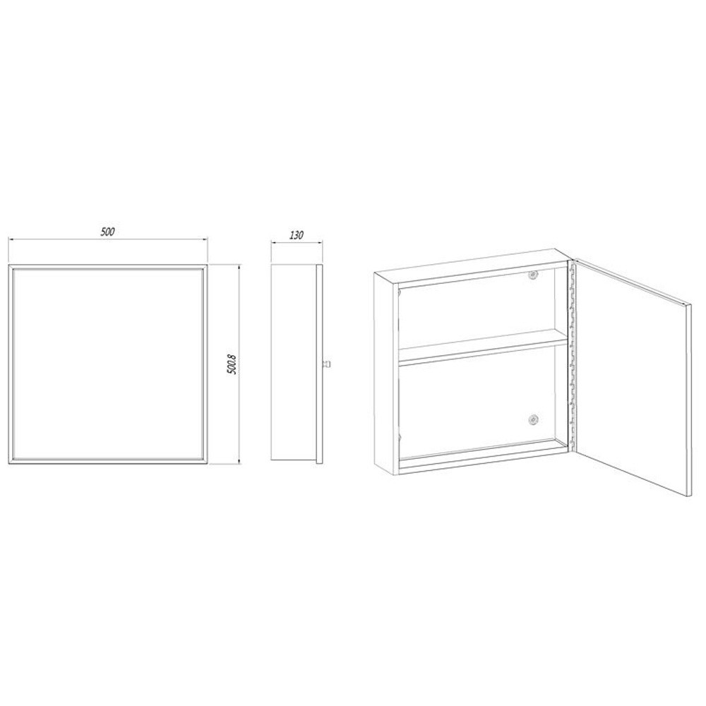 Seville 500mm x 500mm Large Square Bathroom Mirror Cabinet With Internal Shelf