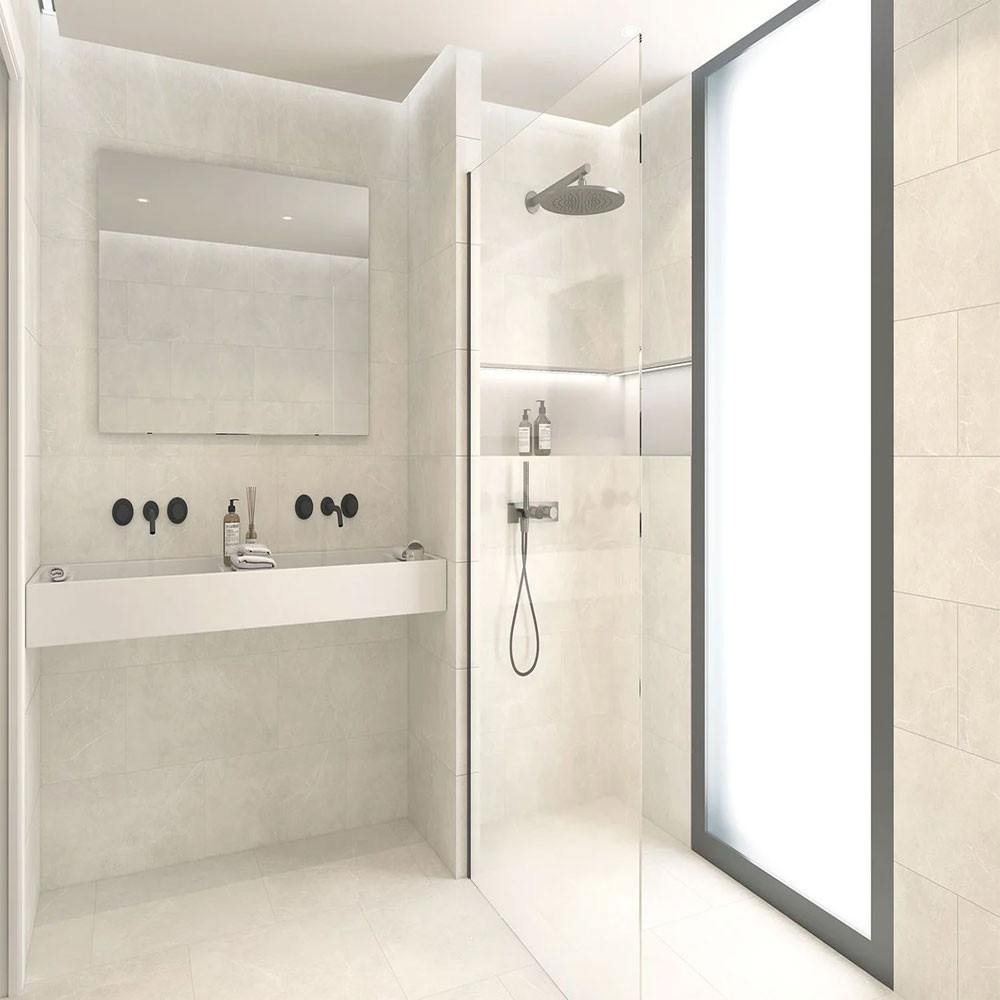The Soapstone White Matt Porcelain Large Wall & Floor Tiles are the ultimate choice for any renovation or design project. They are perfect for a variety of spaces, including bathrooms, kitchens, living rooms, and more. With a high R9 slip resistance rating, they offer both style and safety, making them ideal for high-traffic areas and wet spaces like showers or swimming pool surrounds.