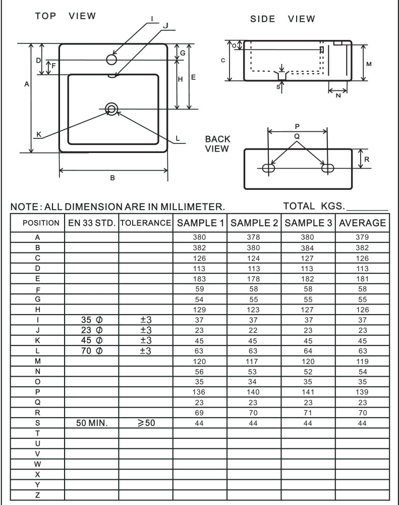 • External Dimensions: 120mm height x 380mm width x 380mm depth