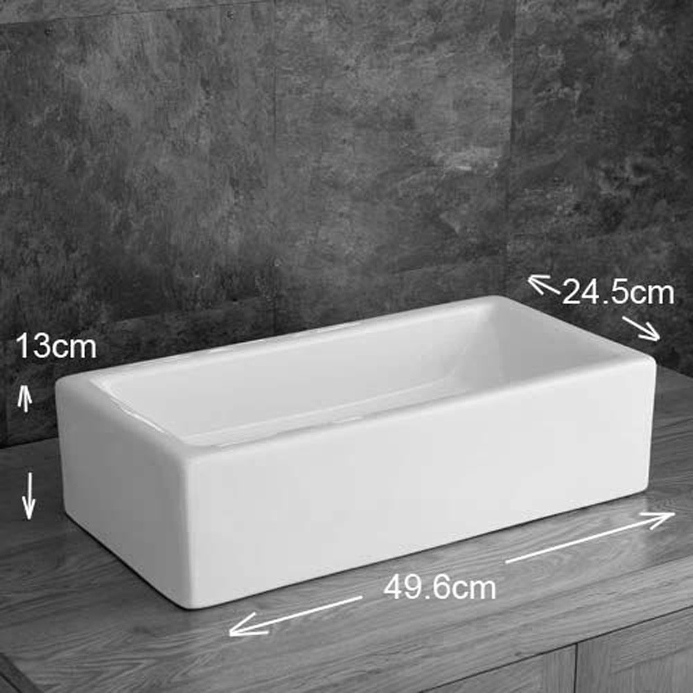 Treviso 490mm White Ceramic Narrow Trough Shaped Rectangular Countertop Basin
