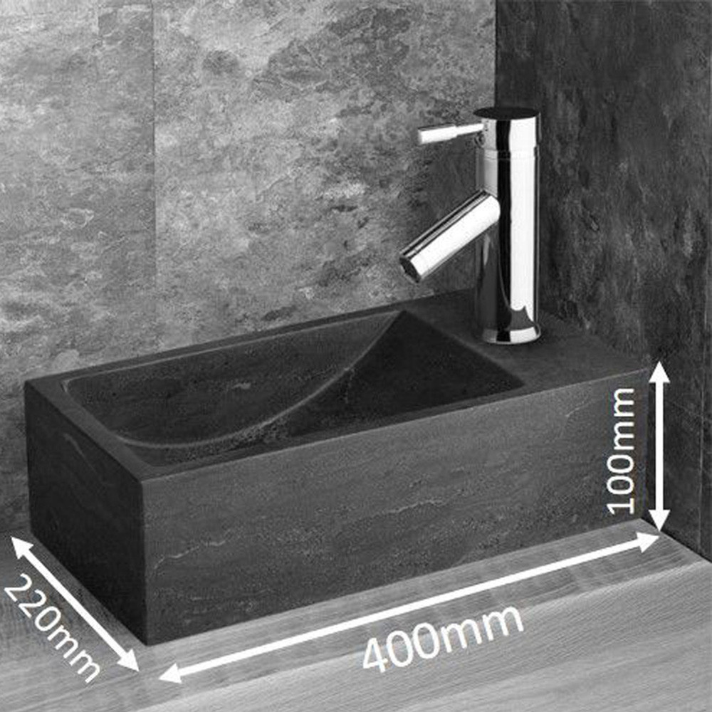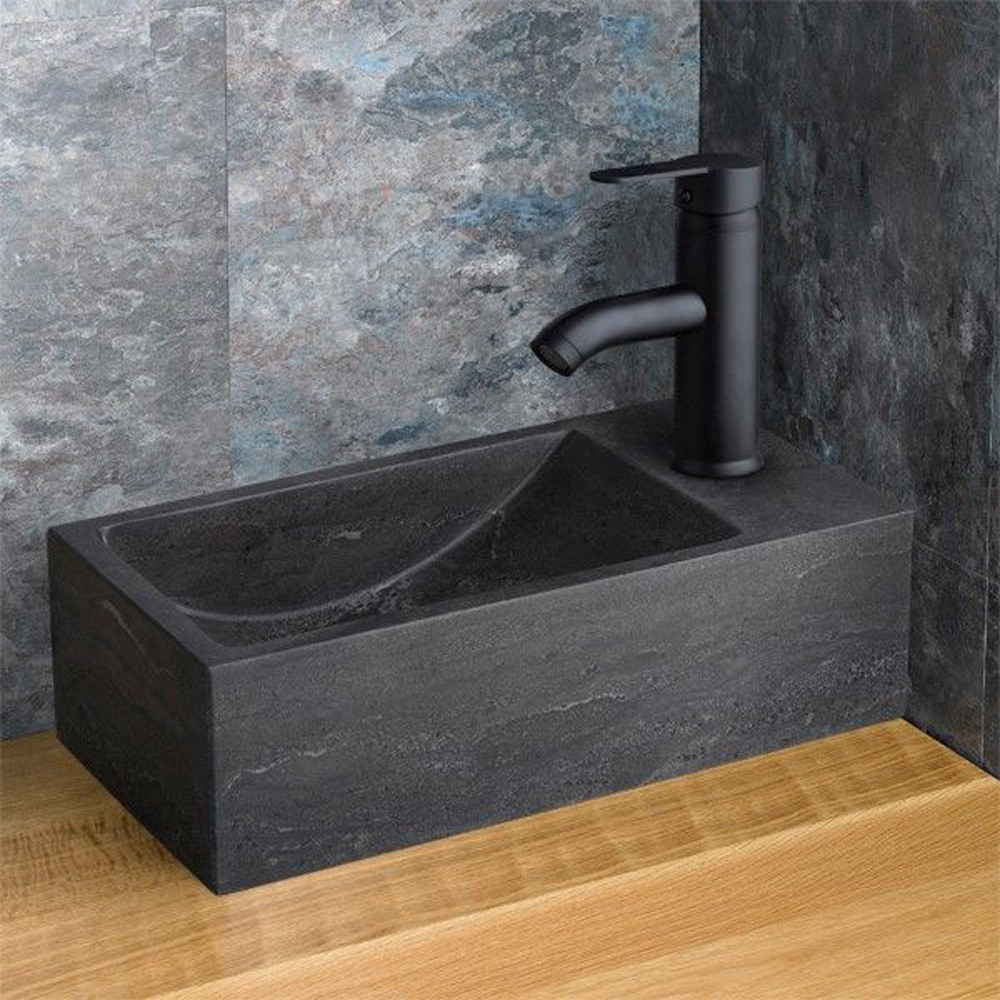 Features & Benefits: Valletri 400mm Black Limestone Right Hand Rectangular Basin