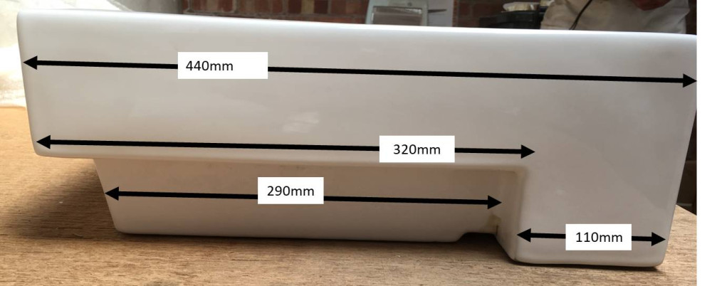 • Semi-recessed installation: 110mm front overhang, 320mm sits on counter and 290mm sunken into counter