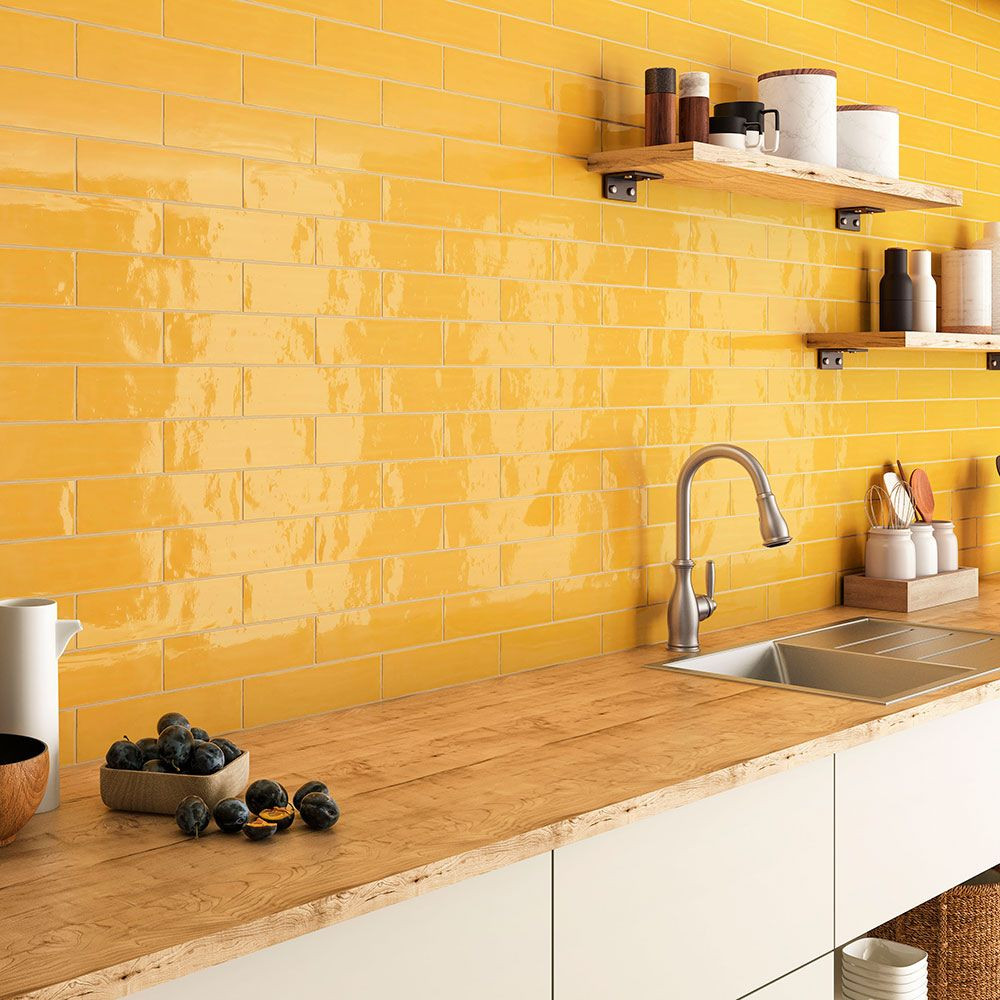 Features & Benefits: Villetta Mustard Yellow Gloss Ceramic Wall Tile - 300mm x 75mm