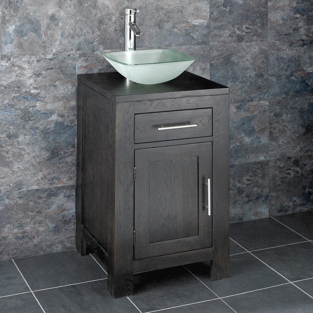 Features & Benefits: DISCON-Wenge Oak Cloakroom Vanity Unit & Square Frosted Glass Basin