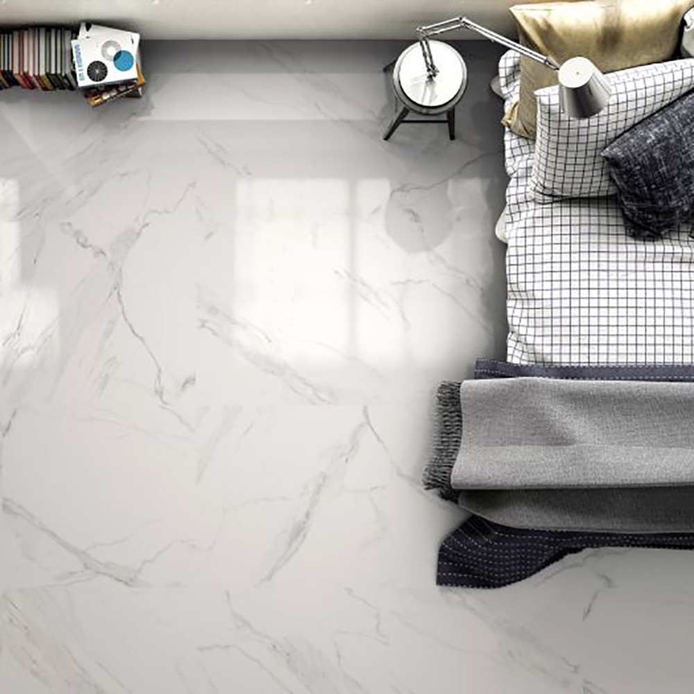 Features & Benefits: White Marble Effect Gloss Rectified Porcelain Floor Tile - 600mm x 600mm